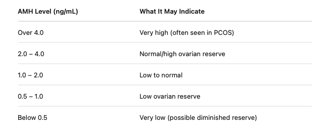 ⚠️ Note: AMH can vary by lab, testing method, and birth control use. Always interpret your results with a doctor.